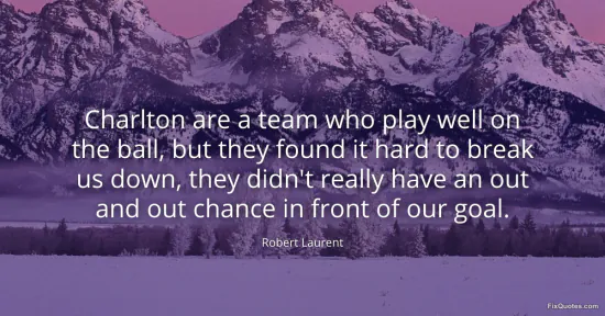 Laurent, Robert. "Charlton are a team who play well on the ball, but they found it hard to break us down, they didn't really have an out and out chance in front of our goal." FixQuotes. January 16, 2026. https://fixquotes.com/quotes/charlton-are-a-team-who-play-well-on-the-ball-but-135864/.