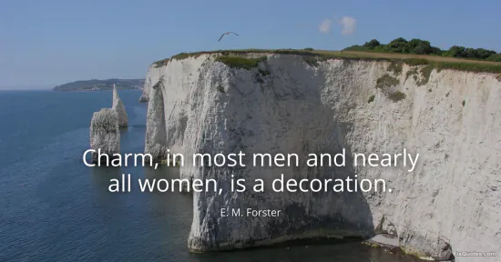Forster, E. M. "Charm, in most men and nearly all women, is a decoration." FixQuotes. January 18, 2026. https://fixquotes.com/quotes/charm-in-most-men-and-nearly-all-women-is-a-3152/.