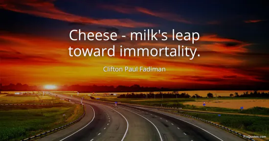 Fadiman, Clifton Paul. (2026, February 14). Cheese - milk's leap toward immortality. FixQuotes. https://fixquotes.com/quotes/cheese-milks-leap-toward-immortality-101959/