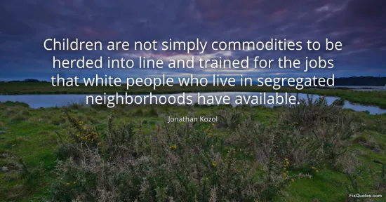 Kozol, Jonathan. (2026, January 15). Children are not simply commodities to be herded into line and trained for the jobs that white people who live in segregated neighborhoods have available. FixQuotes. https://fixquotes.com/quotes/children-are-not-simply-commodities-to-be-herded-148670/