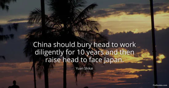 Shikai, Yuan. "China should bury head to work diligently for 10 years and then raise head to face Japan." FixQuotes. January 15, 2026. https://fixquotes.com/quotes/china-should-bury-head-to-work-diligently-for-10-73661/.