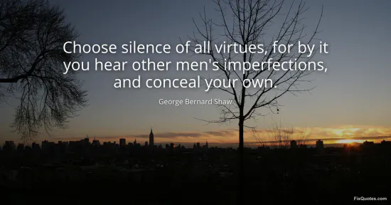 Shaw, George Bernard. (2026, January 15). Choose silence of all virtues, for by it you hear other men's imperfections, and conceal your own. FixQuotes. https://fixquotes.com/quotes/choose-silence-of-all-virtues-for-by-it-you-hear-35027/