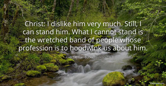 Butler, Samuel. (2026, January 18). Christ: I dislike him very much. Still, I can stand him. What I cannot stand is the wretched band of people whose profession is to hoodwink us about him. FixQuotes. https://fixquotes.com/quotes/christ-i-dislike-him-very-much-still-i-can-stand-17345/