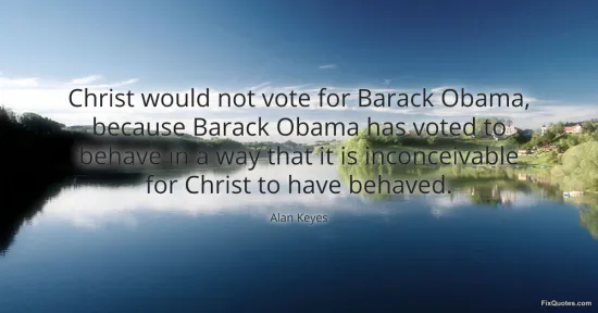 Alan Keyes stakes a sweeping moral claim, measuring a contemporary politician against the character of Jesus and declaring the comparison impossible to sustain. The move does several things at once. It converts a policy dispute into a question of discipleship, it asserts privileged access to what Christ would do in a modern democracy, and it turns voting into a test of theological fidelity rather than civic reasoning. The language is absolute and personal, accusing Barack Obama not merely of error but of behavior inconceivable for a Christian exemplar.
