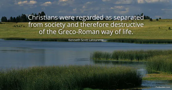 Latourette, Kenneth Scott. (2026, January 15). Christians were regarded as separated from society and therefore destructive of the Greco-Roman way of life. FixQuotes. https://fixquotes.com/quotes/christians-were-regarded-as-separated-from-149097/