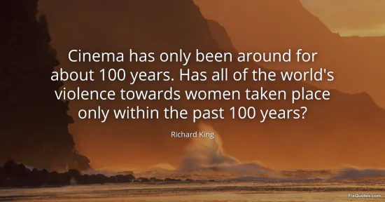 King, Richard. (2026, January 15). Cinema has only been around for about 100 years. Has all of the world's violence towards women taken place only within the past 100 years? FixQuotes. https://fixquotes.com/quotes/cinema-has-only-been-around-for-about-100-years-144994/