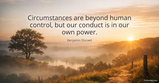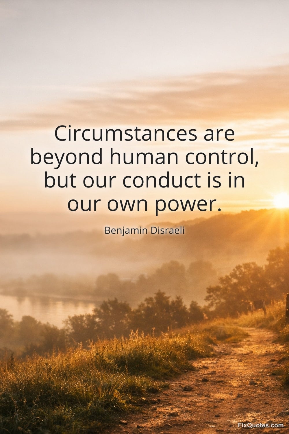 Disraeli, Benjamin. (2026, February 7). Circumstances are beyond human control, but our conduct is in our own power. FixQuotes. https://fixquotes.com/quotes/circumstances-are-beyond-human-control-but-our-30069/