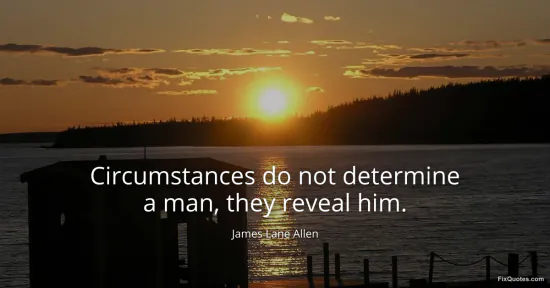 Allen, James Lane. (2026, January 16). Circumstances do not determine a man, they reveal him. FixQuotes. https://fixquotes.com/quotes/circumstances-do-not-determine-a-man-they-reveal-91481/