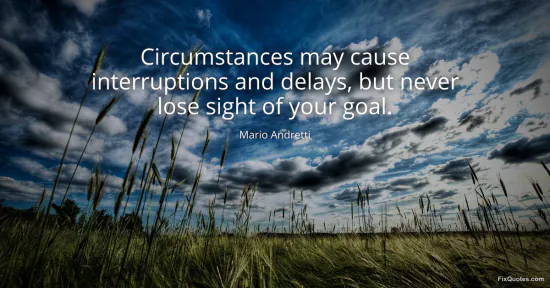 Andretti, Mario. (2026, January 17). Circumstances may cause interruptions and delays, but never lose sight of your goal. FixQuotes. https://fixquotes.com/quotes/circumstances-may-cause-interruptions-and-delays-76041/