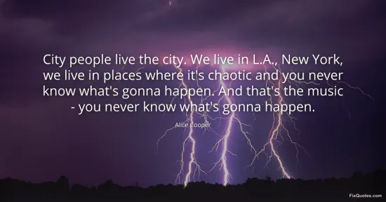 Cooper, Alice. (2026, January 17). City people live the city. We live in L.A., New York, we live in places where it's chaotic and you never know what's gonna happen. And that's the music - you never know what's gonna happen. FixQuotes. https://fixquotes.com/quotes/city-people-live-the-city-we-live-in-la-new-york-36697/
