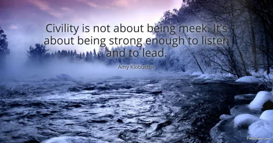Klobuchar, Amy. (2026, January 30). Civility is not about being meek. It’s about being strong enough to listen and to lead. FixQuotes. https://fixquotes.com/quotes/civility-is-not-about-being-meek-its-about-being-184781/