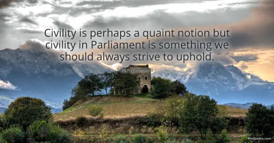 "Civility is perhaps a quaint notion but civility in Parliament is something we should always strive to uphold." FixQuotes, 17 Jan. 2026, https://fixquotes.com/quotes/civility-is-perhaps-a-quaint-notion-but-civility-70254/. Accessed 11 Feb. 2026.