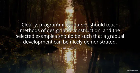 "Clearly, programming courses should teach methods of design and construction, and the selected examples should be such that a gradual development can be nicely demonstrated"