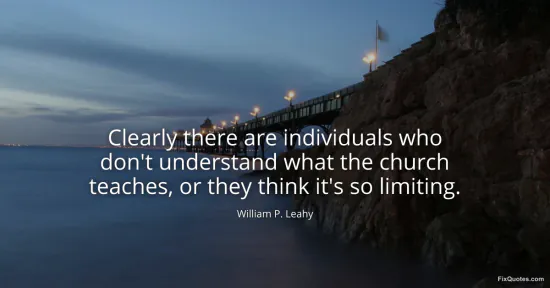 Leahy, William P. "Clearly there are individuals who don't understand what the church teaches, or they think it's so limiting." FixQuotes. Accessed February 2, 2026. https://fixquotes.com/quotes/clearly-there-are-individuals-who-dont-understand-64125/.