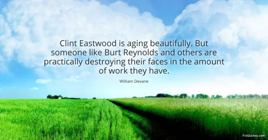 Devane, William. "Clint Eastwood is aging beautifully. But someone like Burt Reynolds and others are practically destroying their faces in the amount of work they have." FixQuotes. January 16, 2026. https://fixquotes.com/quotes/clint-eastwood-is-aging-beautifully-but-someone-104677/.