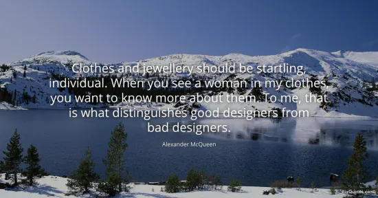 McQueen, Alexander. (2026, January 17). Clothes and jewellery should be startling, individual. When you see a woman in my clothes, you want to know more about them. To me, that is what distinguishes good designers from bad designers. FixQuotes. https://fixquotes.com/quotes/clothes-and-jewellery-should-be-startling-39588/