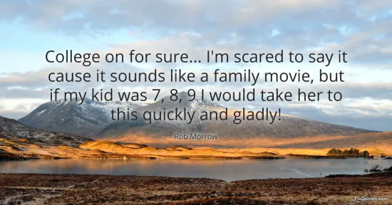 Morrow, Rob. "College on for sure... I'm scared to say it cause it sounds like a family movie, but if my kid was 7, 8, 9 I would take her to this quickly and gladly!" FixQuotes. January 15, 2026. https://fixquotes.com/quotes/college-on-for-sure-im-scared-to-say-it-cause-it-145011/.