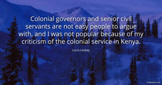 Leakey, Louis. (2026, January 15). Colonial governors and senior civil servants are not easy people to argue with, and I was not popular because of my criticism of the colonial service in Kenya. FixQuotes. https://fixquotes.com/quotes/colonial-governors-and-senior-civil-servants-are-129883/