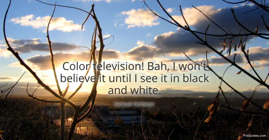 Goldwyn, Samuel. "Color television! Bah, I won't believe it until I see it in black and white." FixQuotes. January 17, 2026. https://fixquotes.com/quotes/color-television-bah-i-wont-believe-it-until-i-73616/.