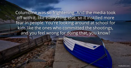 Robinson, John. "Columbine was so frightening. And the media took off with it, like everything else, so it instilled more fear in people. You're looking around at school for kids like the ones who committed the shootings, and you feel wrong for doing that, you know?" FixQuotes. January 16, 2026. https://fixquotes.com/quotes/columbine-was-so-frightening-and-the-media-took-86618/.