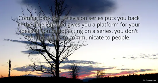 Weaver, Dennis. "Coming back to a television series puts you back in the limelight and gives you a platform for your ideas. If you're not acting on a series, you don't get the ability to communicate to people." FixQuotes. January 15, 2026. https://fixquotes.com/quotes/coming-back-to-a-television-series-puts-you-back-140806/.