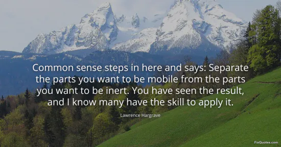 Hargrave, Lawrence. (2026, January 15). Common sense steps in here and says: Separate the parts you want to be mobile from the parts you want to be inert. You have seen the result, and I know many have the skill to apply it. FixQuotes. https://fixquotes.com/quotes/common-sense-steps-in-here-and-says-separate-the-146736/
