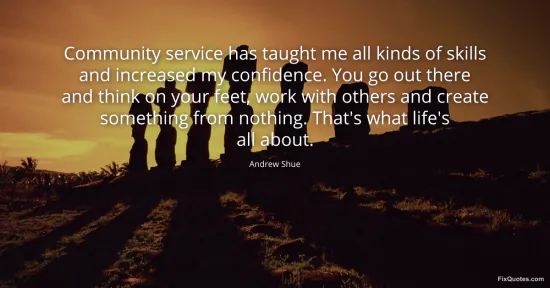 Shue, Andrew. (2026, January 17). Community service has taught me all kinds of skills and increased my confidence. You go out there and think on your feet, work with others and create something from nothing. That's what life's all about. FixQuotes. https://fixquotes.com/quotes/community-service-has-taught-me-all-kinds-of-60976/