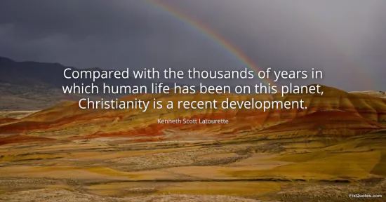 Latourette, Kenneth Scott. "Compared with the thousands of years in which human life has been on this planet, Christianity is a recent development." FixQuotes. January 15, 2026. https://fixquotes.com/quotes/compared-with-the-thousands-of-years-in-which-149098/.
