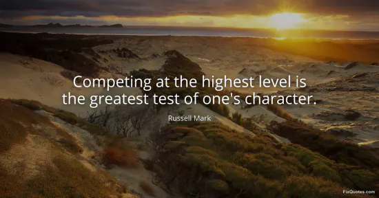 Russell Mark’s line flatters ambition while quietly putting it on trial. “Competing at the highest level” isn’t framed as a path to glory or mastery; it’s framed as an exposure chamber, a place where you don’t get to curate who you are. The superlative “greatest test” does a lot of work: it elevates competitive pressure above private virtue, everyday decency, even crisis. That hierarchy is the provocation. Mark implies that when stakes are maximal and scrutiny is relentless, the masks that work in normal life stop working.