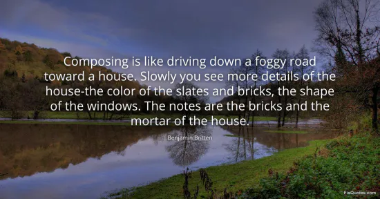"Composing is like driving down a foggy road toward a house. Slowly you see more details of the house-the color of the slates and bricks, the shape of the windows. The notes are the bricks and the mortar of the house"