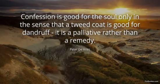 Vries, Peter De. (2026, January 16). Confession is good for the soul only in the sense that a tweed coat is good for dandruff - it is a palliative rather than a remedy. FixQuotes. https://fixquotes.com/quotes/confession-is-good-for-the-soul-only-in-the-sense-107261/