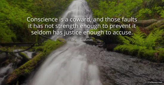 Goldsmith, Oliver. "Conscience is a coward, and those faults it has not strength enough to prevent it seldom has justice enough to accuse." FixQuotes. January 18, 2026. https://fixquotes.com/quotes/conscience-is-a-coward-and-those-faults-it-has-11095/.