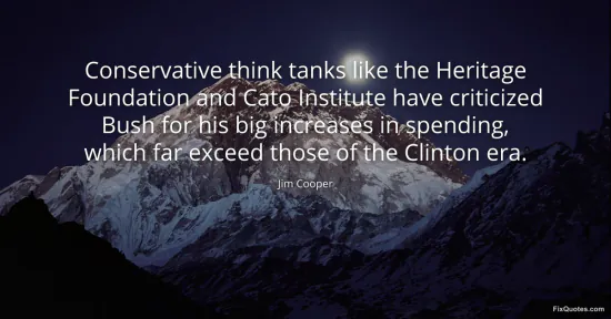 Cooper, Jim. "Conservative think tanks like the Heritage Foundation and Cato Institute have criticized Bush for his big increases in spending, which far exceed those of the Clinton era." FixQuotes. January 15, 2026. https://fixquotes.com/quotes/conservative-think-tanks-like-the-heritage-164920/.