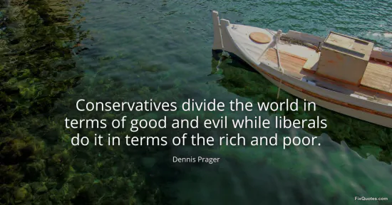 Prager, Dennis. "Conservatives divide the world in terms of good and evil while liberals do it in terms of the rich and poor." FixQuotes. January 17, 2026. https://fixquotes.com/quotes/conservatives-divide-the-world-in-terms-of-good-52561/.