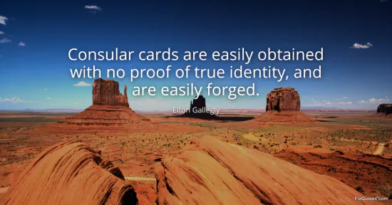Gallegly, Elton. (2026, February 18). Consular cards are easily obtained with no proof of true identity, and are easily forged. FixQuotes. https://fixquotes.com/quotes/consular-cards-are-easily-obtained-with-no-proof-65788/