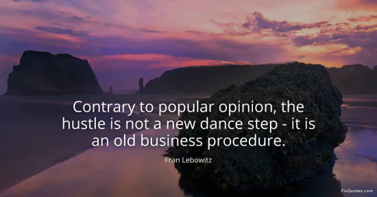 Lebowitz, Fran. (2026, January 18). Contrary to popular opinion, the hustle is not a new dance step - it is an old business procedure. FixQuotes. https://fixquotes.com/quotes/contrary-to-popular-opinion-the-hustle-is-not-a-14455/
