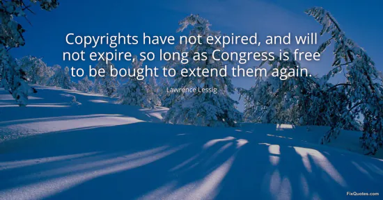 Lessig, Lawrence. (2026, January 15). Copyrights have not expired, and will not expire, so long as Congress is free to be bought to extend them again. FixQuotes. https://fixquotes.com/quotes/copyrights-have-not-expired-and-will-not-expire-167959/