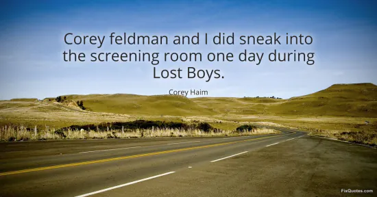 Haim, Corey. (2026, January 17). Corey feldman and I did sneak into the screening room one day during Lost Boys. FixQuotes. https://fixquotes.com/quotes/corey-feldman-and-i-did-sneak-into-the-screening-38967/