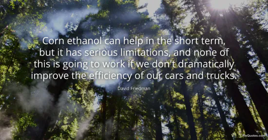 Friedman, David. "Corn ethanol can help in the short term, but it has serious limitations, and none of this is going to work if we don't dramatically improve the efficiency of our cars and trucks." FixQuotes. January 16, 2026. https://fixquotes.com/quotes/corn-ethanol-can-help-in-the-short-term-but-it-139201/.
