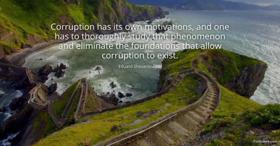 Shevardnadze, Eduard. "Corruption has its own motivations, and one has to thoroughly study that phenomenon and eliminate the foundations that allow corruption to exist." FixQuotes. January 15, 2026. https://fixquotes.com/quotes/corruption-has-its-own-motivations-and-one-has-to-145401/.