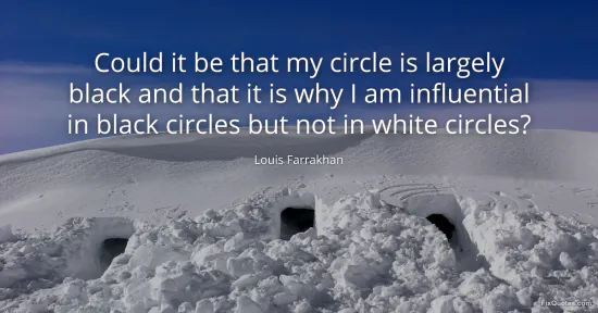 Farrakhan, Louis. "Could it be that my circle is largely black and that it is why I am influential in black circles but not in white circles?" FixQuotes. January 17, 2026. https://fixquotes.com/quotes/could-it-be-that-my-circle-is-largely-black-and-63619/.