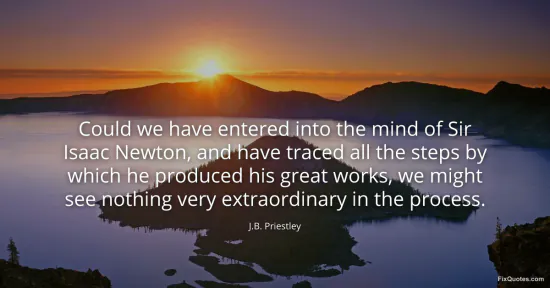 Priestley, J.B. (2026, January 16). Could we have entered into the mind of Sir Isaac Newton, and have traced all the steps by which he produced his great works, we might see nothing very extraordinary in the process. FixQuotes. https://fixquotes.com/quotes/could-we-have-entered-into-the-mind-of-sir-isaac-113743/
