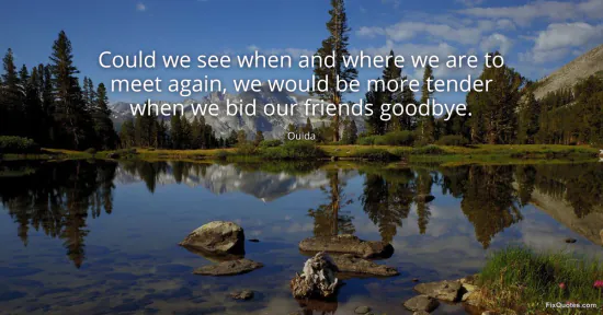 Ouida. "Could we see when and where we are to meet again, we would be more tender when we bid our friends goodbye." FixQuotes. January 15, 2026. https://fixquotes.com/quotes/could-we-see-when-and-where-we-are-to-meet-again-143405/.
