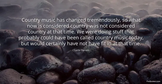 Daniels, Charlie. "Country music has changed tremendously, so what now is considered country was not considered country at that time. We were doing stuff that probably could have been called country music today, but would certainly have not have fit in at that time." FixQuotes. January 17, 2026. https://fixquotes.com/quotes/country-music-has-changed-tremendously-so-what-43065/.