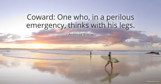 "Coward: One who, in a perilous emergency, thinks with his legs"