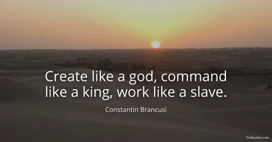Brancusi, Constantin. (2026, January 15). Create like a god, command like a king, work like a slave. FixQuotes. https://fixquotes.com/quotes/create-like-a-god-command-like-a-king-work-like-a-44087/