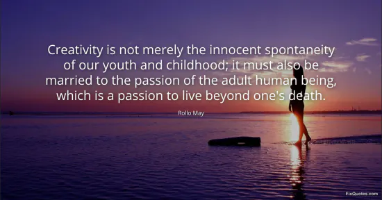 May, Rollo. "Creativity is not merely the innocent spontaneity of our youth and childhood; it must also be married to the passion of the adult human being, which is a passion to live beyond one's death." FixQuotes. January 18, 2026. https://fixquotes.com/quotes/creativity-is-not-merely-the-innocent-spontaneity-2992/.