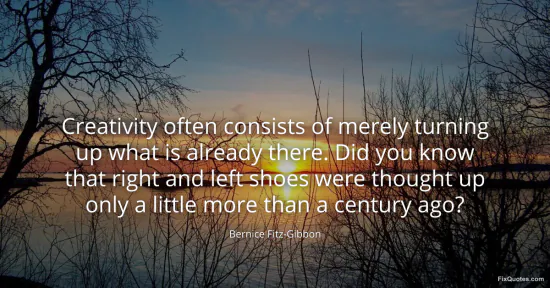 Fitz-Gibbon, Bernice. "Creativity often consists of merely turning up what is already there. Did you know that right and left shoes were thought up only a little more than a century ago?" FixQuotes. January 17, 2026. https://fixquotes.com/quotes/creativity-often-consists-of-merely-turning-up-37660/.