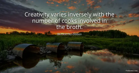 Fitz-Gibbon, Bernice. (2026, January 16). Creativity varies inversely with the number of cooks involved in the broth. FixQuotes. https://fixquotes.com/quotes/creativity-varies-inversely-with-the-number-of-139266/