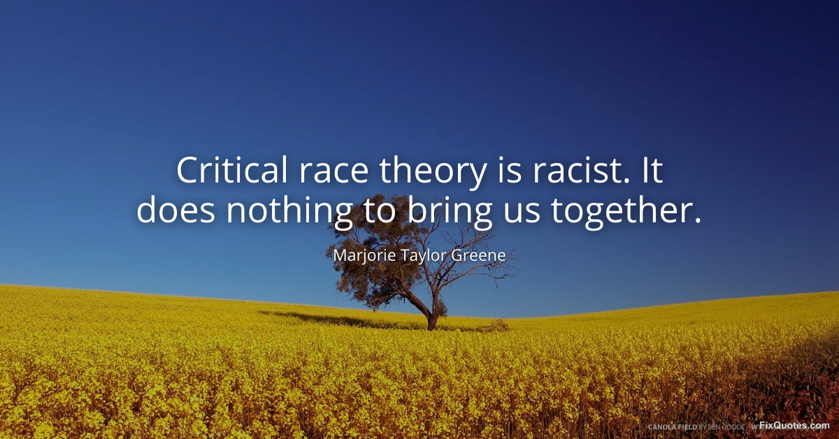 Greene, Marjorie Taylor. (2026, January 15). Critical race theory is racist. It does nothing to bring us together. FixQuotes. https://fixquotes.com/quotes/critical-race-theory-is-racist-it-does-nothing-to-173543/